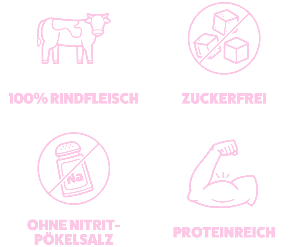 SNACKL kommt ohne Nitritpökelsalz, künstliche Aromen oder fragwürdige Zusatzstoffe aus. Bei uns bekommst du echtes Fleisch, fertig.